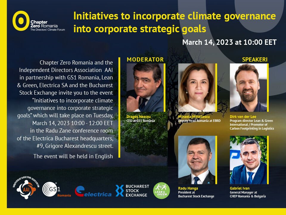 On Tuesday 14 March, Chapter Zero Romania and the Independent Directors Association / Asociatia Administratorilor Independenti AAI in partnership with GS1 RomaniaLean & Green InternationalElectrica and the Bucharest Stock Exchange / Bursa de Valori Bucuresti (BVB) hosted the event ‚Initiatives to incorporate climate governance into corporate strategic goals‘: the launch of Lean & Green Romania.